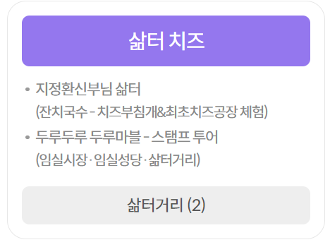 전주와 임실에서 운행하는 셔틀버스도 있습니다. 자세한 버스 운행 시간표는 임실N치즈 웹사이트 셔틀 페이지를 참고해 주세요.