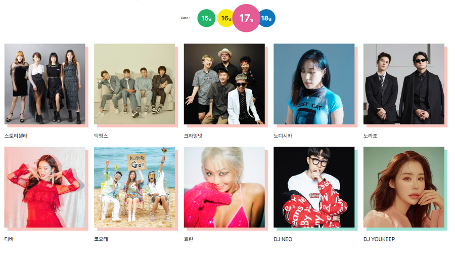 가수와 그룹들의 공연은 오후 2시 반부터 저녁 10시까지이지만 금, 토, 일요일에 출연하시는 DJ분들과 함께 자정까지 음악을 즐기실 수 있습니다. 토요일 DJ NEO 강력 추천합니다.